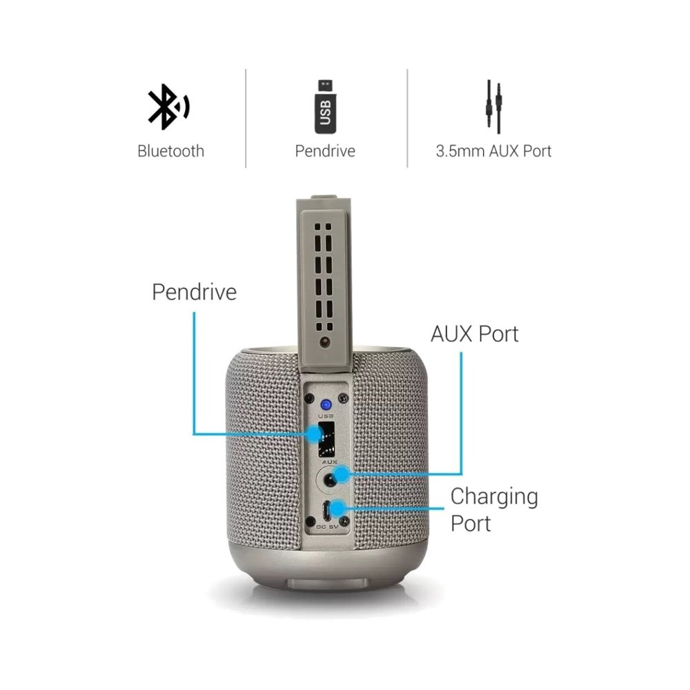 10W Bass Sound Output: Portronics SoundDrum1 10W portable Bluetooth speaker is a game changer for all gatherings. It comes with 10W Bass Sound Output which creates great volume.